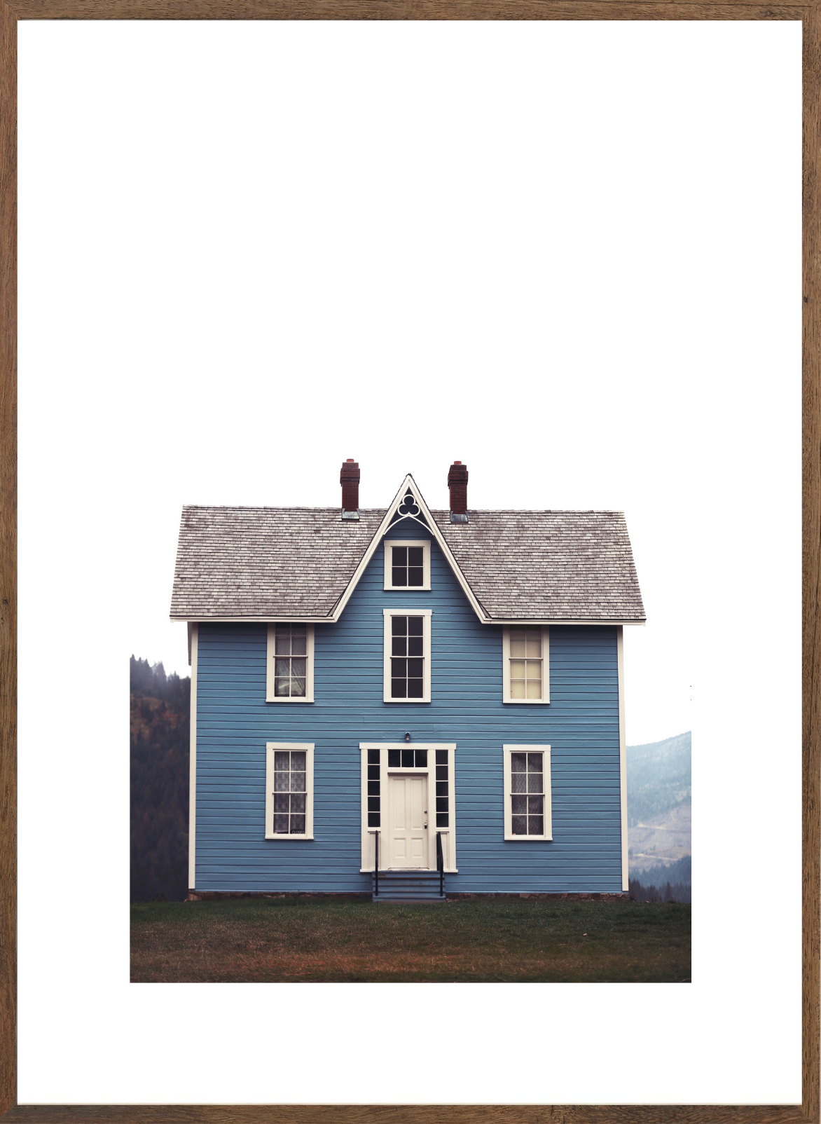 Frames are made custom to order. Photos are printed on archival-quality paper, mounted on premium backing board, matted with a thick white matte, and fitted into a solid maple or walnut wood frame with a high-quality, scratch-resistant glass. Arrives ready to hang.